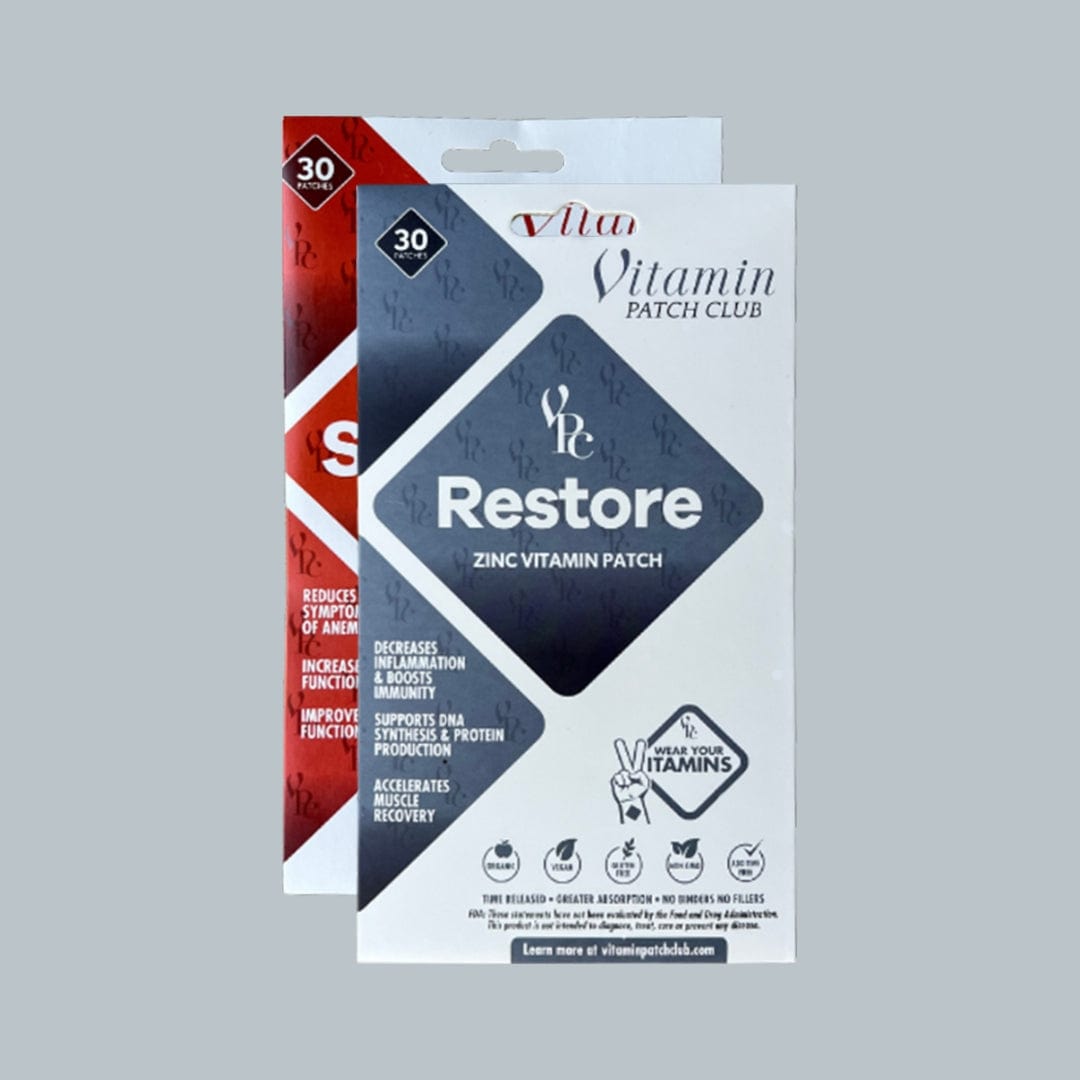 Each order contains a 30-day supply of both our Restore (Zinc) and Strength (Iron) patches.